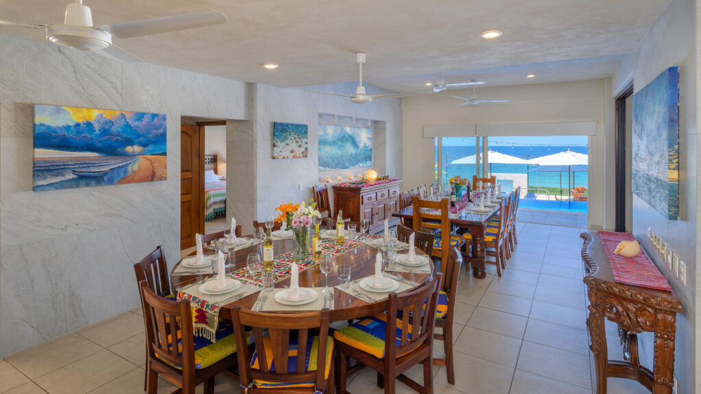 The staff of five at Casa Milagro will always be at your service. The chef will shop and prepare two meals per day, either breakfast and lunch or lunch and dinner. There is a waiter/bartender and a houseman to clean the pool, the patio, beach and all of the outer areas of the villa. The house keeper will keep all interior areas very clean and the laundry person washes towels daily, bed linen every three days and personal laundry for a fee.